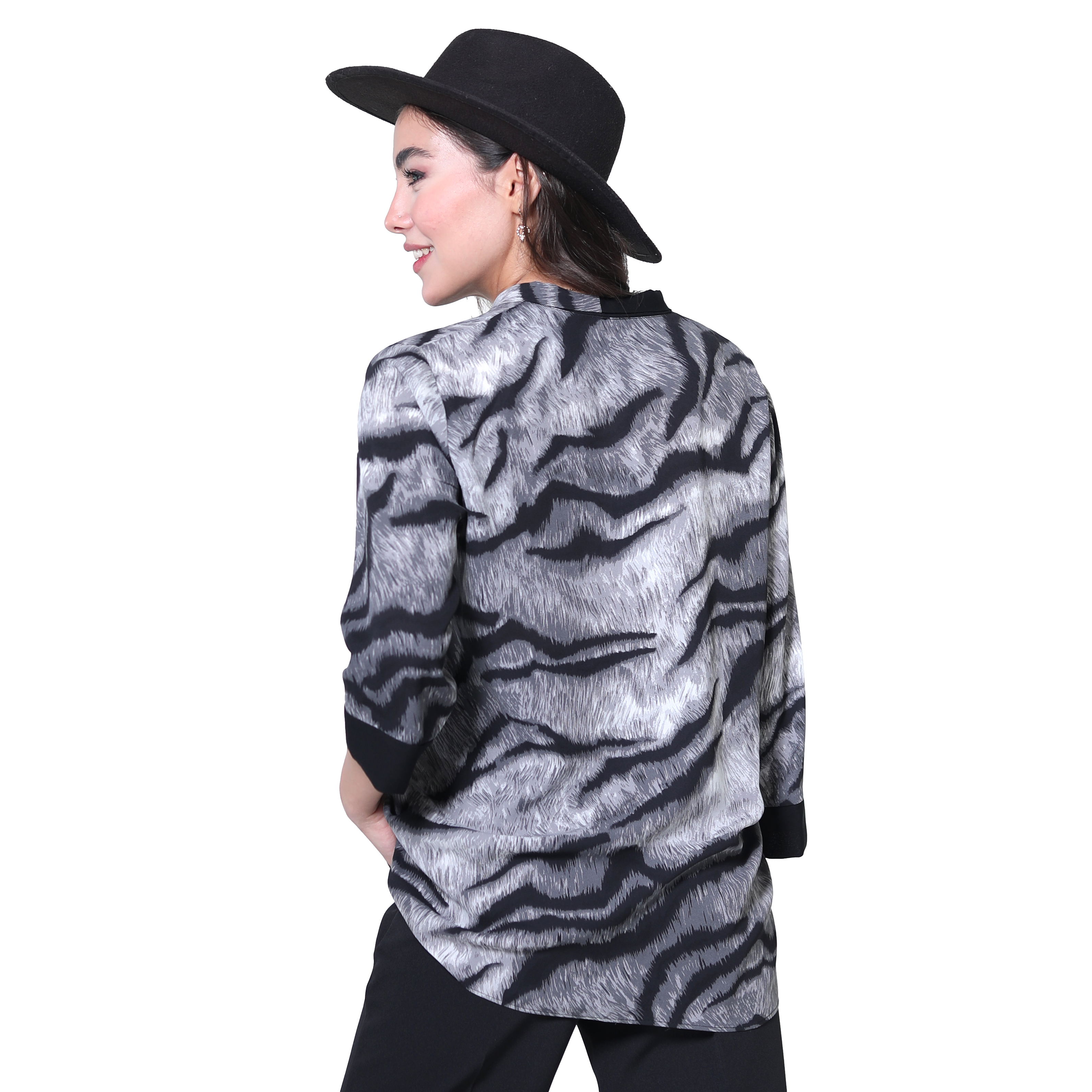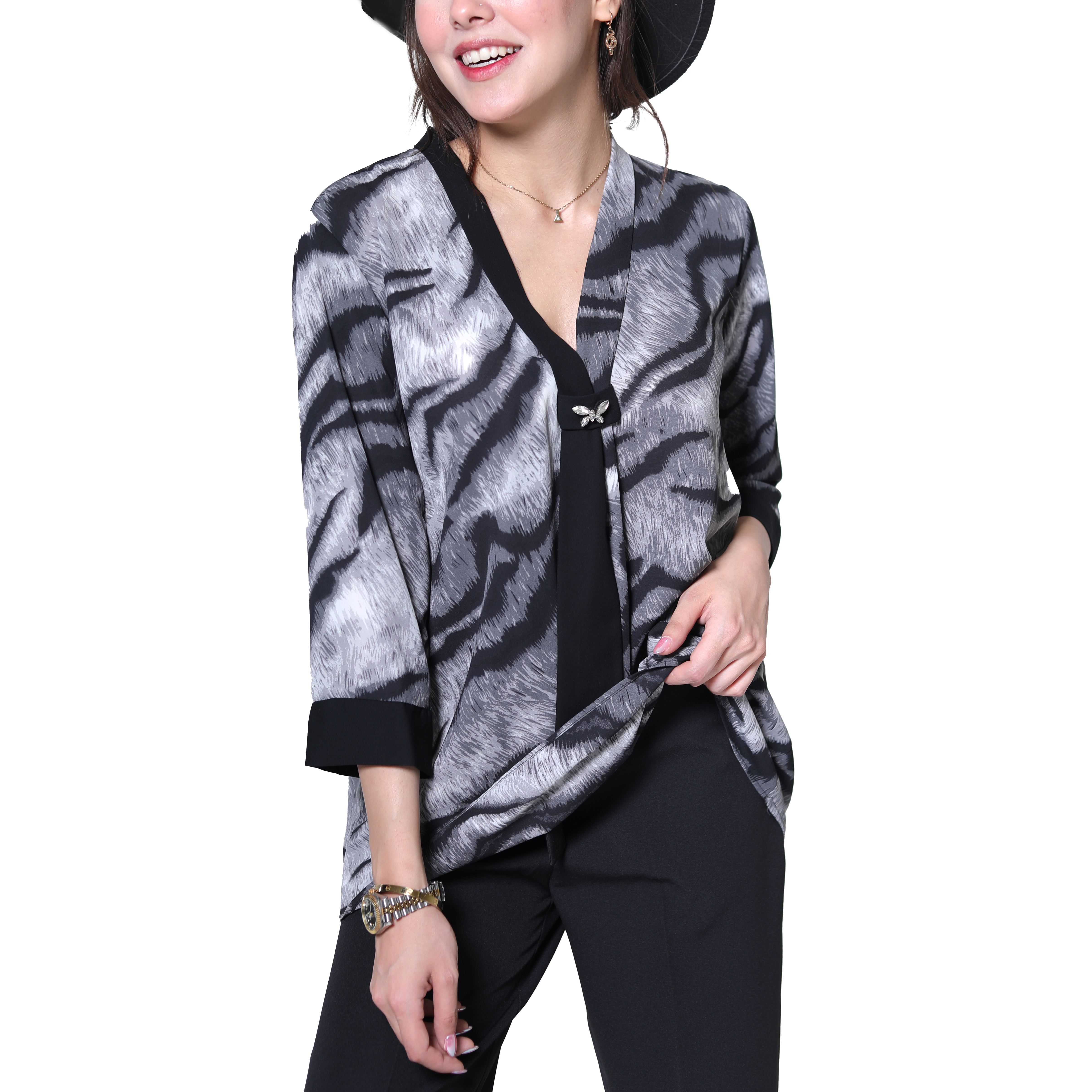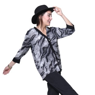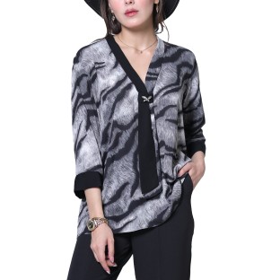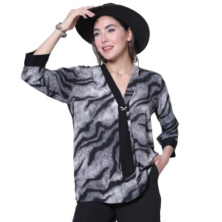 شومیز زنانه یقه V طرح مشکی و طوسی